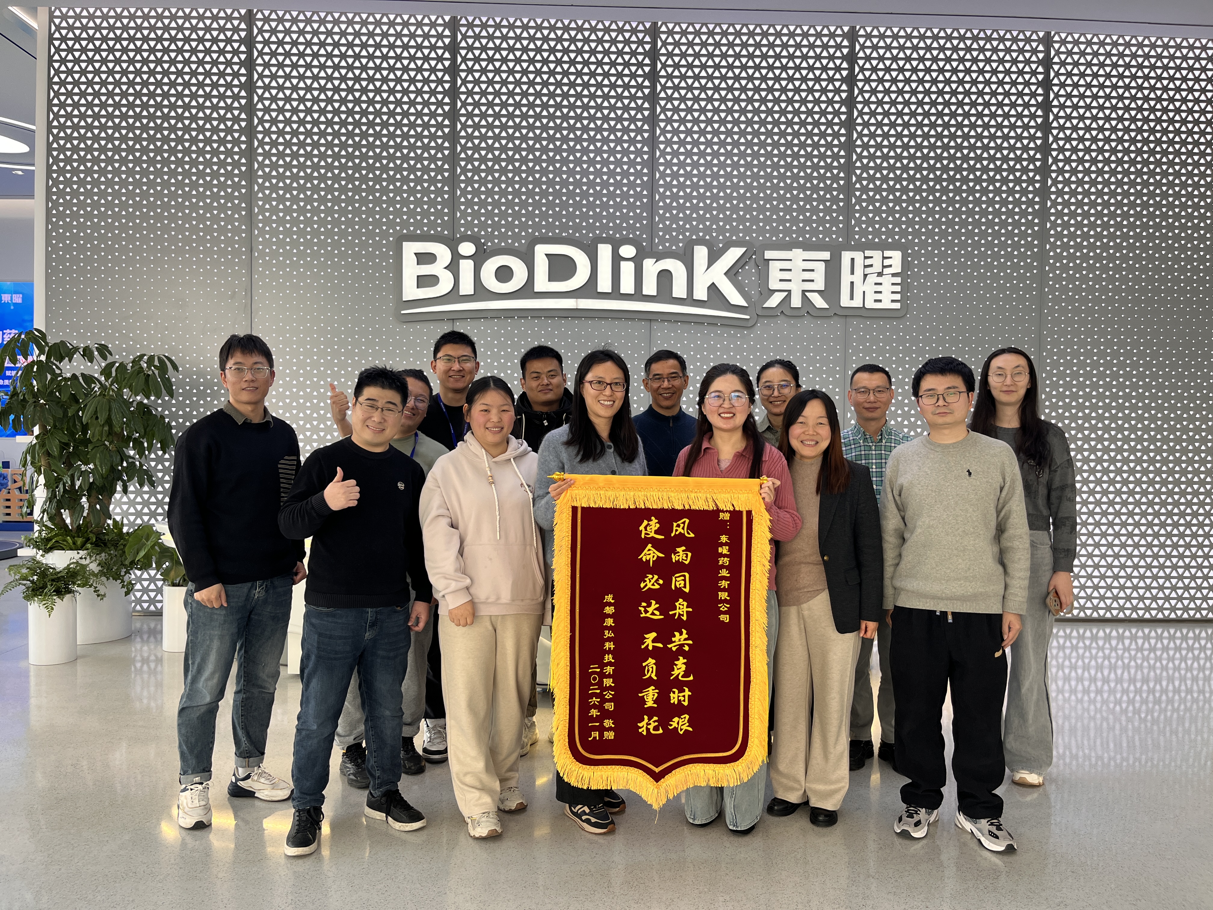 自2023年12月项目启动以来,东曜药业与康弘药业紧密协作,在双载荷ADC的复杂偶联工艺、分析方法开发及制剂研究等环节实现多项关键技术突破。面对分子结构复杂、工艺难度大、时间紧张等多重挑战,双方团队高效协同,最终推动项目